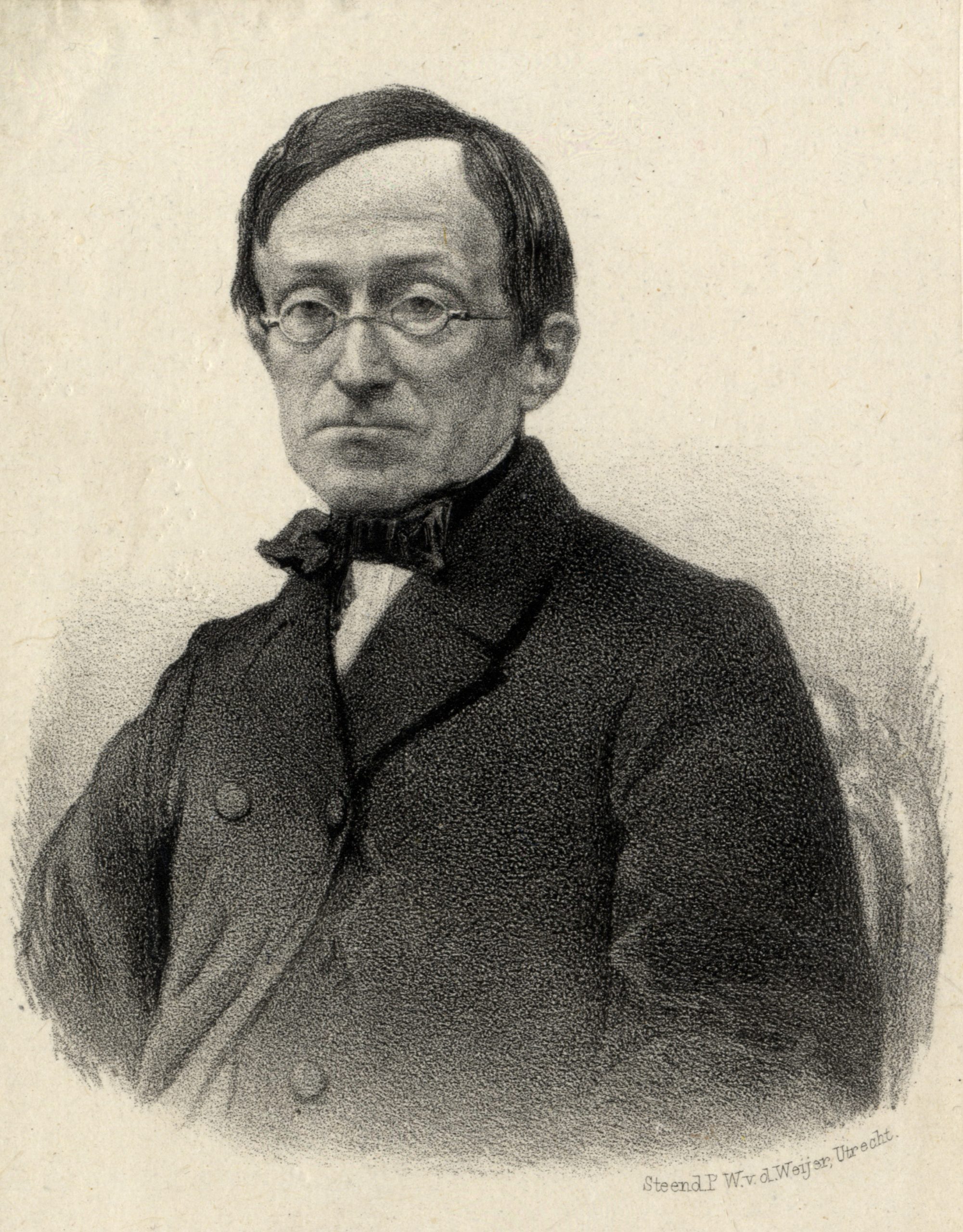 Foto links: Journalist en uitgever Leonard Eduard Bosch, prentje door P.W. van de Weijer uit 1866 (Het Utrechts Archief).
